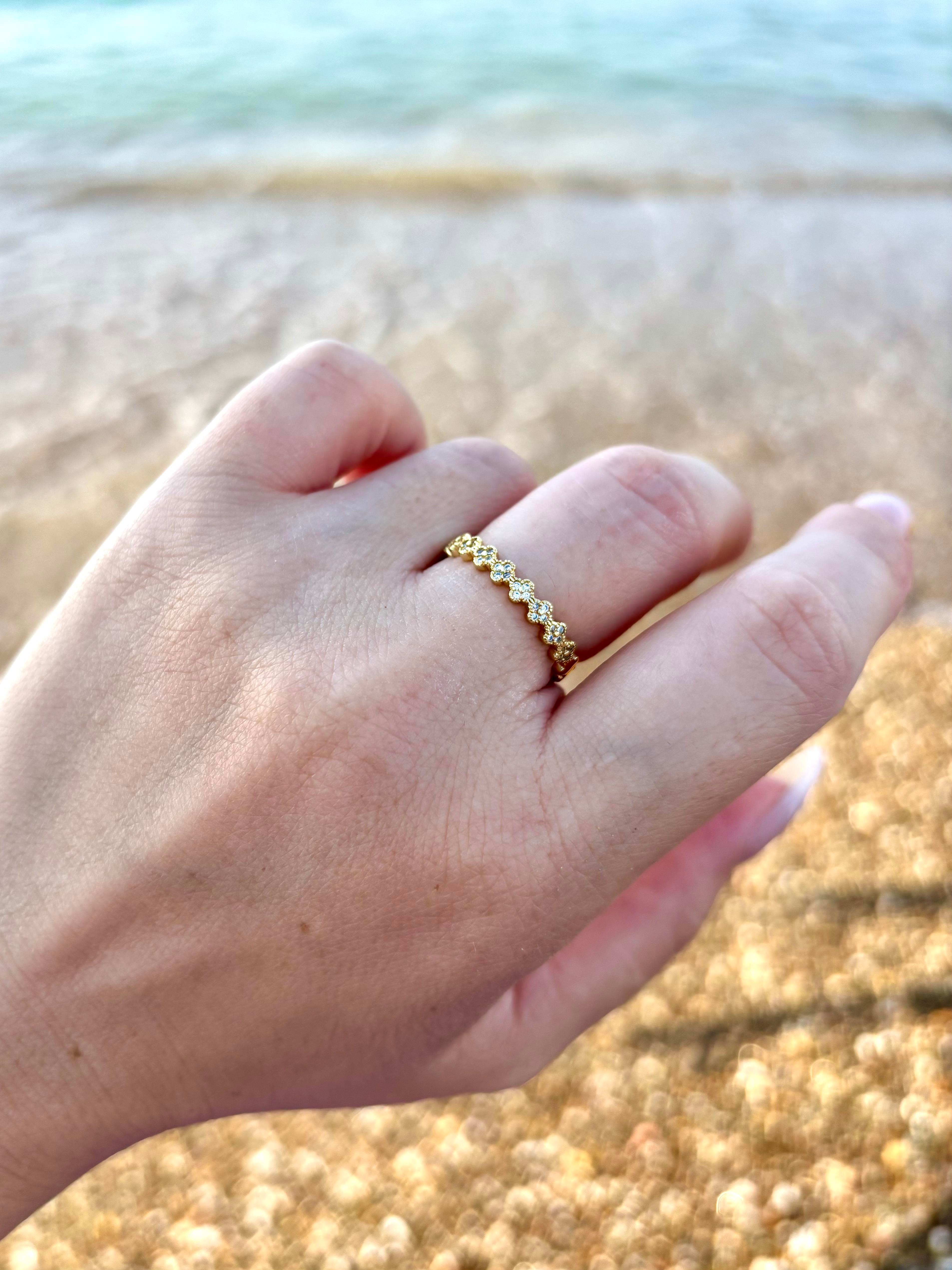 Çiçekli Taşlı Gold Yüzük