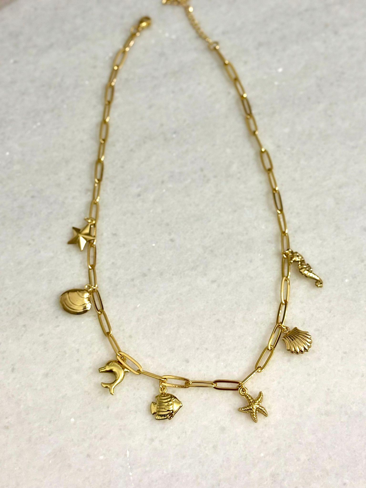 Deniz Canlıları Figürlü Charmlı Çelik Kolye