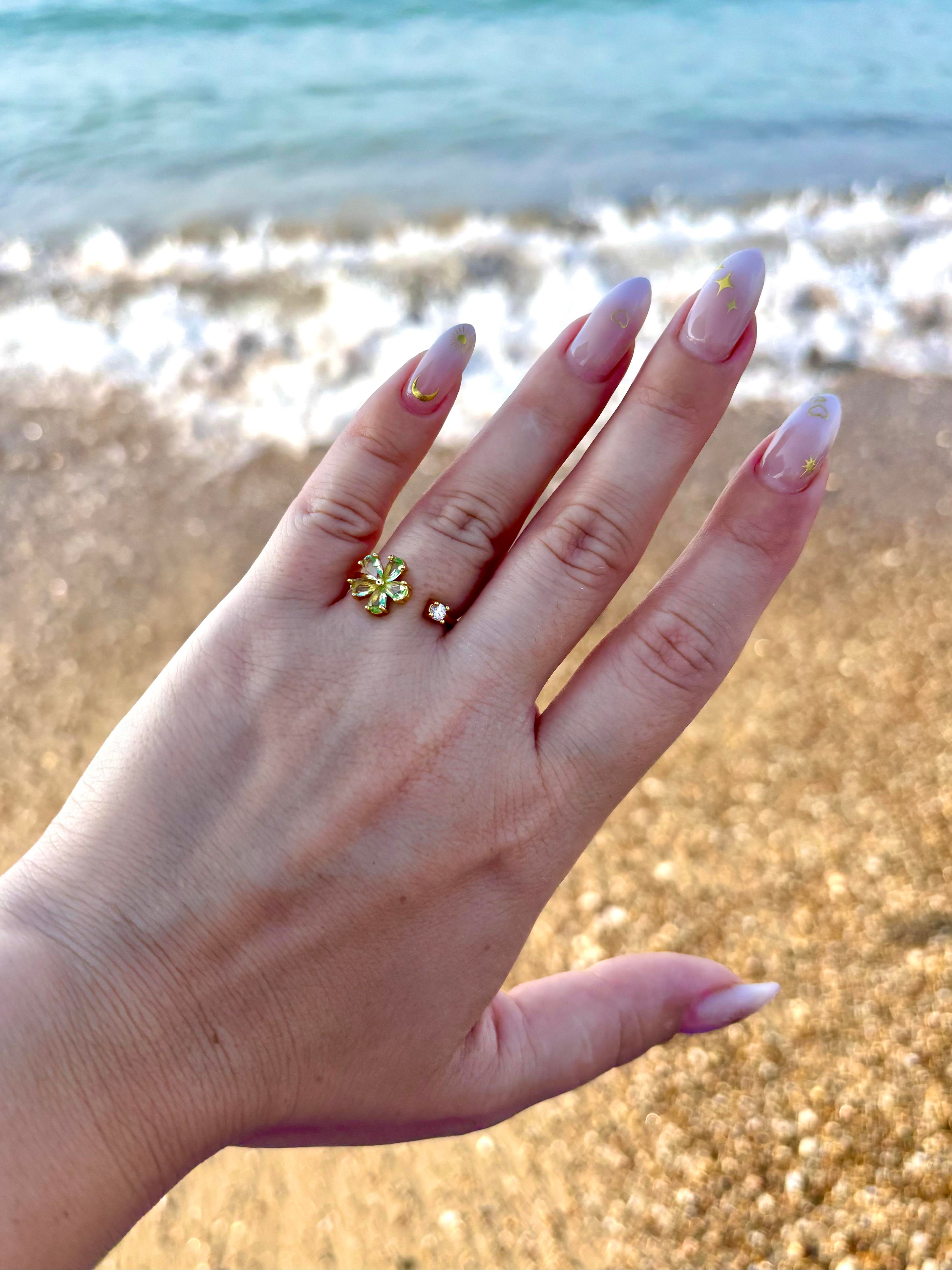 Yeşil Taşlı Çiçek Yüzük